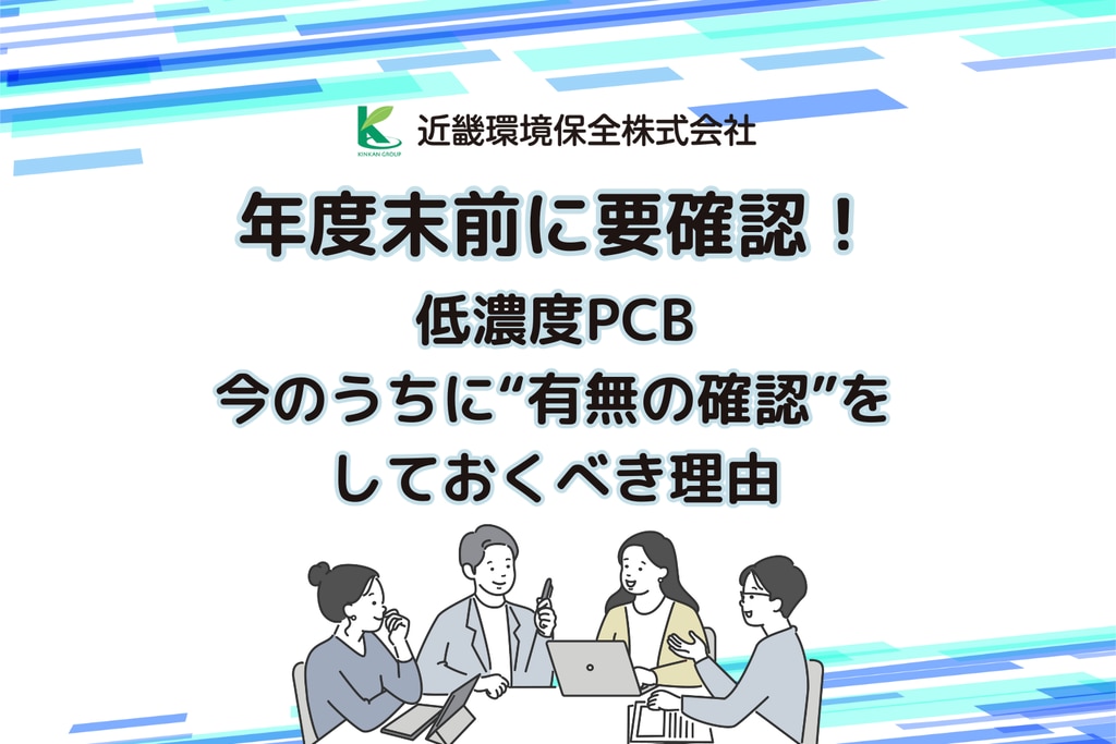 低濃度PCBは、日常業務に直接影響が出にくいため、存在を把握していないまま保管され続けているケースも少なくありません。 しかし、処理期限が2027年3月31日と定められている今、確認を先延ばしにすることは大きなリスクにつながります。 本記事では、なぜ年度末前の今こそ低濃度PCBの有無を確認すべきなのか、その理由と考え方を整理します。